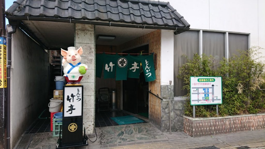 「とんかつ竹亭 本店」は、マツモトキヨシ 鹿屋大手町店の裏通りにあります。待っている人が多いのでわかりやすいですよ~! 駐車場は、4ケ所ありますので30~40台ぐらい。特にお昼時は満車になるので開店前後、13時半以降に行かれると停めやすいかもしれないですね。私は、以前日曜のお昼に行ったら1時間待ちでした(^^;) 竹亭のとんかつが食べたいから待つのが苦にはならなかったです。時間に余裕があったら時間をずらしてゆっくり食べたいですね。